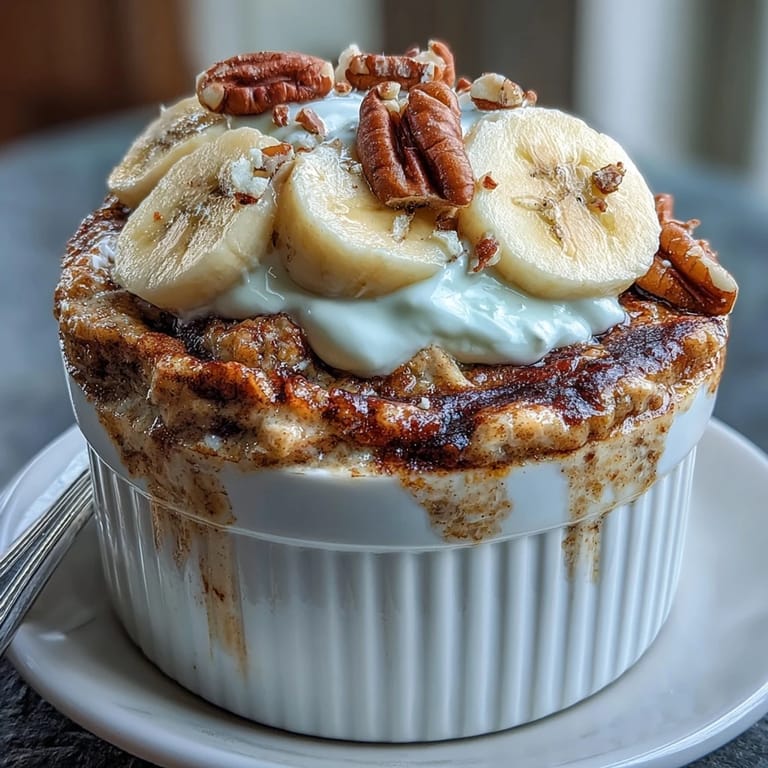 Save to Pinterest There's something almost rebellious about eating what tastes like warm banana bread for breakfast, except it's loaded with protein and actually keeps you full until lunch. I discovered this recipe on a morning when I'd overslept and needed something faster than my usual routine but still felt like a proper breakfast, not just a protein shake gulped down between meetings. The first time I pulled that ramekin out of the oven, the smell of cinnamon and caramelized banana made my kitchen feel like a cafe, and I realized I'd accidentally created the perfect bridge between comfort food and fitness goals. It's become my go-to when I want something that tastes indulgent but actually fuels my day.
