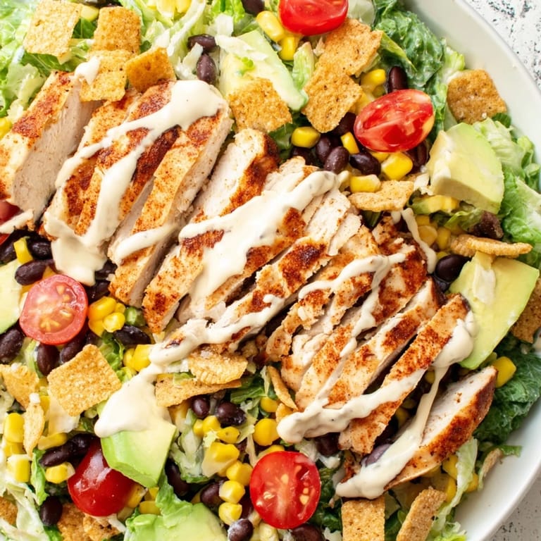 I first made this for a friend who claimed to hate salads, watching her expression shift from polite skepticism to genuine delight when she hit that first layer of seasoned chicken. We ate on the back porch, sunlight filtering through the trees, and she proceeded to text me the next morning asking for the recipe before shed even finished her morning coffee.